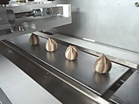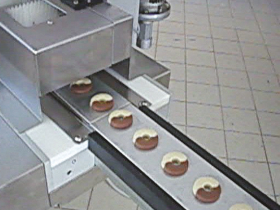 Per la produzione di biscotti ripieni. Con questo dispositivo il ripieno viene chiuso all’interno dell’impasto. E’ possibile aggiungere anche gocce di cioccolato, frutta secca, semi di sesamo o pezzi di frutta disidratata all’interno dell’impasto. Il volume del biscotto, la velocità di chiusura e la lunghezza del prodotto possono essere variati.