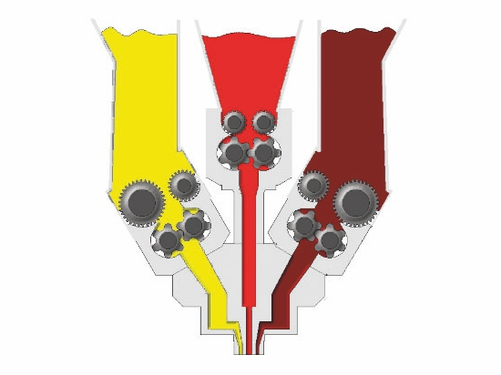 Il prodotto estruso è tagliato mediante una ghigliottina alla lunghezza desiderata. Utilizzando il sistema “twist” è possibile fare ruotare gli ugelli di estrusione in modo da ottenere dei prodotti a treccia.