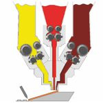 Il prodotto estruso è tagliato mediante una ghigliottina alla lunghezza desiderata. Utilizzando il sistema "twist" è possibile fare ruotare gli ugelli di estrusione in modo da ottenere dei prodotti a treccia.