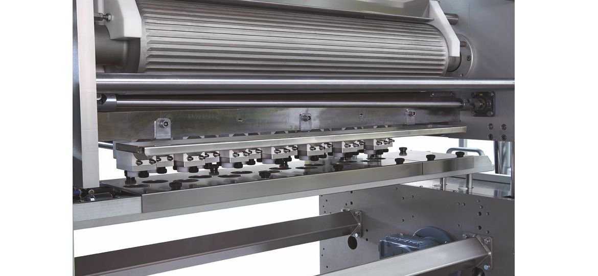 Per la produzione di biscotti ripieni. Con questo dispositivo il ripieno viene chiuso all’interno dell’impasto. E’ possibile aggiungere anche gocce di cioccolato, frutta secca, semi di sesamo o pezzi di frutta disidratata all’interno dell’impasto. Il volume del biscotto, la velocità di chiusura e la lunghezza del prodotto possono essere variati.